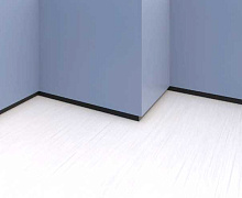Особенности монтажа: Уложите ламинат так, чтобы его край заходил под будущий профиль, но не упирался в стену. Нанесите «жидкие гвозди» зигзагом на тыльную сторону профиля. Приклейте профиль к ровной стене прямо поверх ламината. Заштукатурьте верхнюю кромку профиля, чтобы она слилась со стеной. Зашпаклюйте и покрасьте стену как обычно.