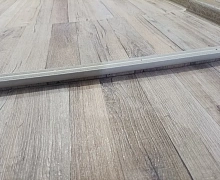 Способ монтажа: алюминиевый порожек крепится в проем между двумя напольными покрытиями на саморезы.